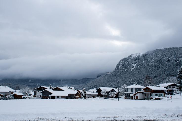 Недаром мы так отчаянно хотели снега – он пришел. Да так, что хватит всей Европе на годы вперед. С утра в окне не было видно даже гор, снег валил красивыми большими хлопьями повсюду и видимо делал это всю ночь, потому что нашу машину, стоящую под окнами, было почти не видно из-под снега. Зато теперь Австрия была похожа на Австрию. Тем более в декабре.