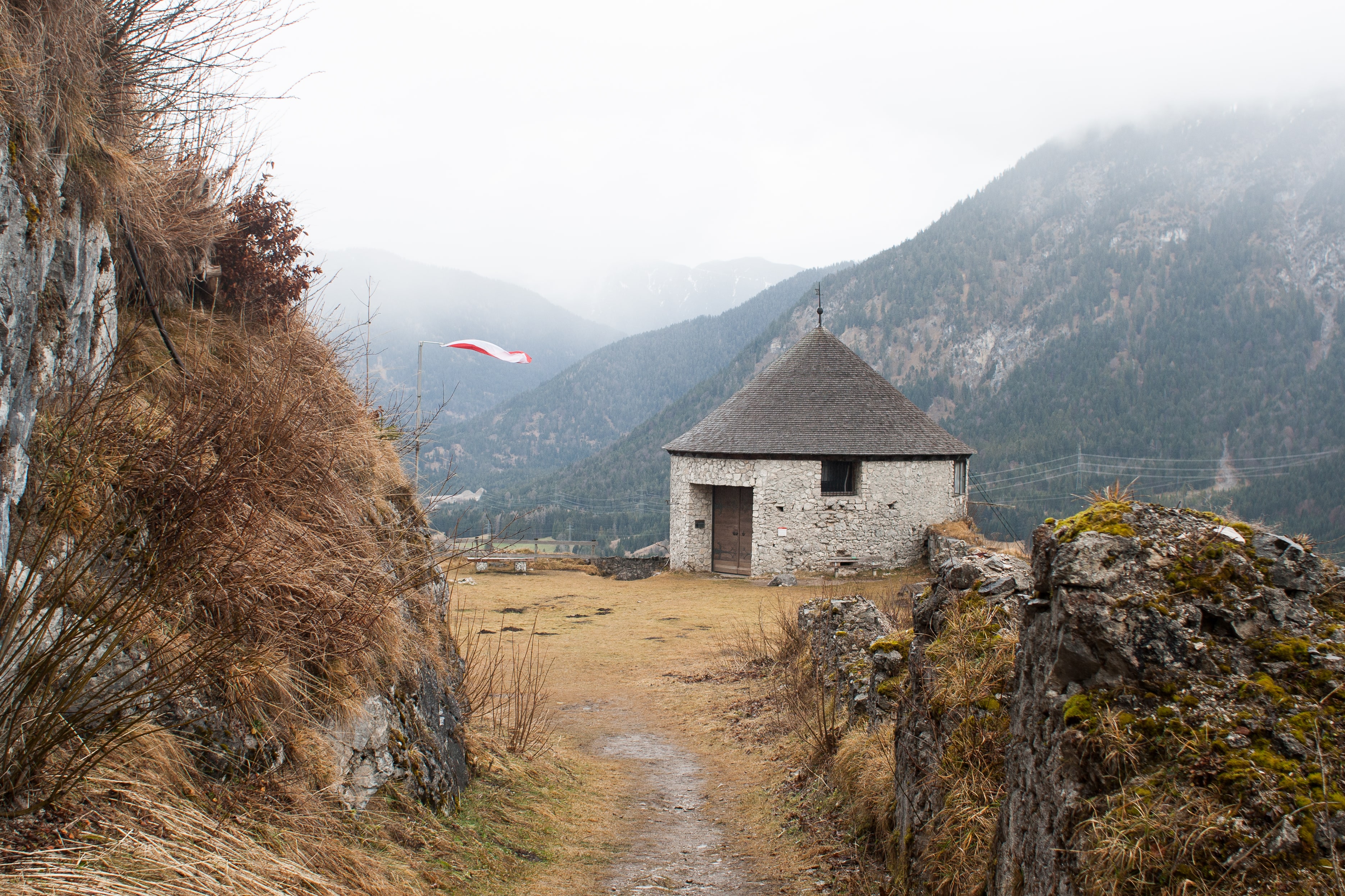 Добравшись до конца и сойдя на землю, мы пережили себя отчаянно смелыми. На радостях, а может в отходняке, пофотографировавшись всласть со смотровой площадки, мы сходили глянуть на форт Клавдия, расположившийся неподалеку, и вернулись к мосту. Не без сомнений, все же было решено идти по нему обратно, чтобы потом проще было выйти к машине. На обратном пути, подобно возвращающимся из славного похода древнегреческим героям – гордые, триумфальные и почти невозмутимые, мы шли с широко открытыми глазами знатоков и расправленными плечами проходимцев, то есть тех, кто уже прошел ЭТО. Дальше, пока Анна Дюссельдорфская и Юная пошли отдохнуть в машину, мы с К зашли поползать по руинам замка Эренберг, с площадки которого открывался просто волшебный вид на долину Ройте.