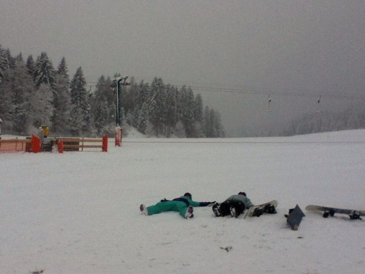 После этого спуска я поняла, что абсолютно не умею кататься на сноуборде. В процентном соотношении где-то 20% спуска я провела на борде, а 80% на попе, коленях, спине и животе. Моя специфическая техника катания вряд ли порадовала бы моего инструктора. И да, это было реально страшно, особенно когда видишь склон, видишь как все, включая стариков и чертовых трехлеток, вокруг тебя спокойно едут, а ты даже придумать не можешь, как тебе начать ехать, не лишившись какой-нибудь важной части тела.