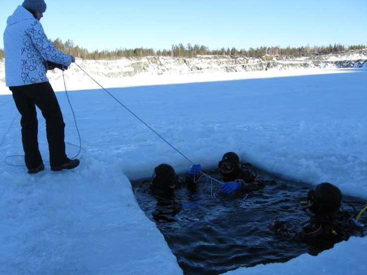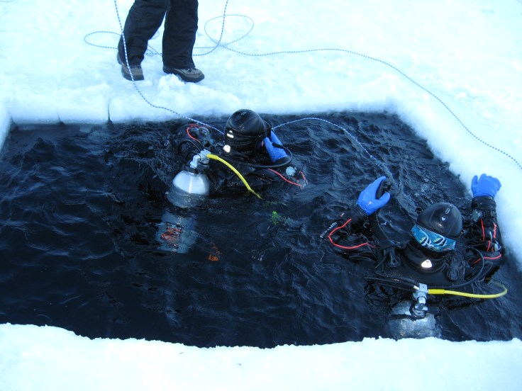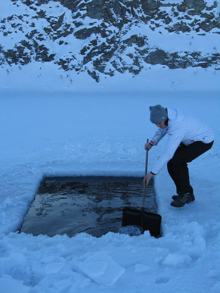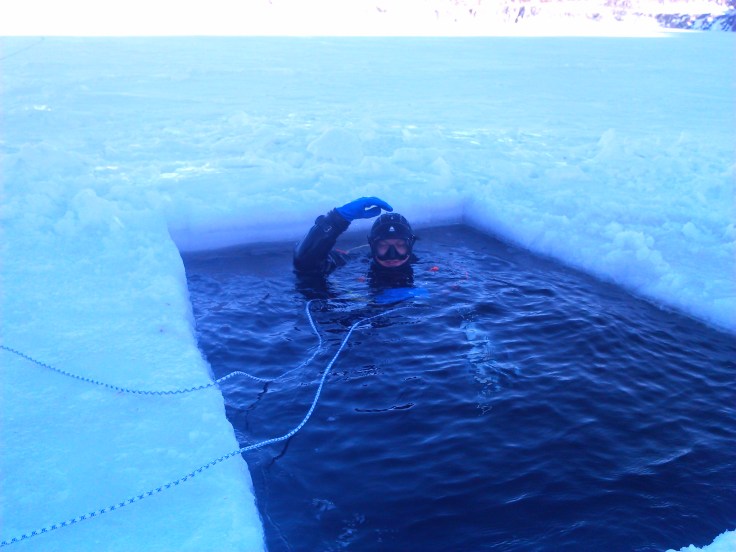Дверь в сердце Сурового Уральского Дайвера легко леденеет снова, поэтому необходимо постоянно очищать майну.