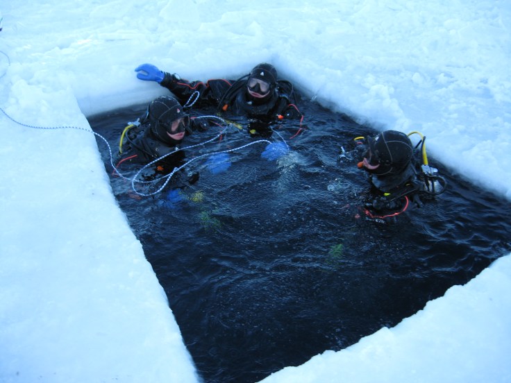 Зато, на призывно открытую майну немедленно слетаются Суровые Уральские Дайверы.