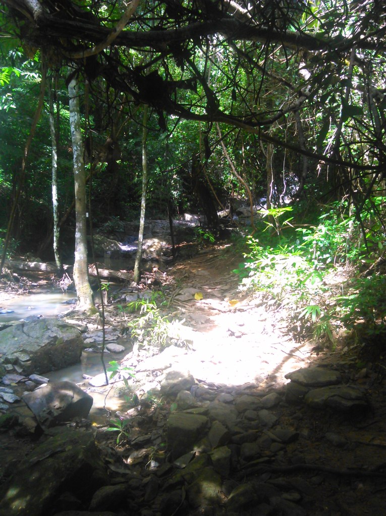 Оглядевшись и не найдя ни указателей, ни асфальтированной дорожки, ни перил, ни людей, мы решили пойти единственной тропой, которая вела в джунгли. Уже через пару метров, мы поняли, что, не смотря на то, что эти “водопады” являются официальной достопримечательностью, они были совершенно дикие. Я подумала, что редкий турист бывает тут, кроме разве что русских, конечно же.