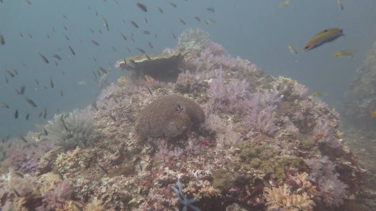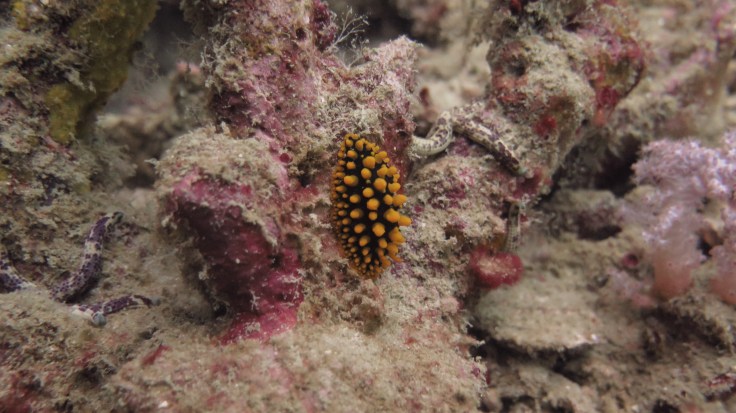 Третий дайв-сайт назывался Бида Нок. Я уже привыкла к каменистому дну и мутной воде тайского моря, поэтому в этот раз меня больше занимало бесконечное количество худосочных морских звезд, “морских цветов” и морских огурцов, которые были разбросаны повсюду щедрой рукой сиамских водных божеств.