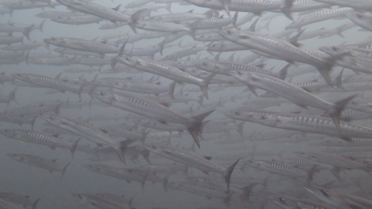 Как всегда по плану, погрузившись на лодку, мы отправились к близлежащим сайтам. В этот день нам предстояло 2 погружения на Рача Ной. Встав на якорь у острова, мы облачились и занырнули. Гид повел нас по направлению к одному ему знакомому месту. Как обычно, заглядывая в компьютер, я, внезапно, начала замечать странность отображаемой на моем подводном компьютере информации. С момента погружения прошло в лучшем случае 5-7 минут, а глубина уже приближалась к 20м! В течение нескольких минут я внимательно вглядывалась в компьютер, пытаясь сохранять приемлемую глубину, но цифры неуклонно росли. Через минут 10 от начала погружения мы были уже на 23,5 метрах и, к моему удивлению, мне было отчаянно сложно удерживать себя на этой глубине, не погружаясь ниже. Это было явно что-то новенькое. В этот момент наш гид дал нам знак к возвращению. Мы повернули обратно и начали медленное всплытие в неравной борьбе с морскими водами, по пути застав и полюбовавшись на целую стаю взрослых барракуд.