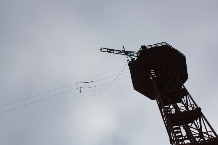 Далее свершилось собственно то самое, ради чего я туда прибыла – меня отправили наверх. Предварительно, очень кстати, снабдив перчатками. Как оказалось, без перчаток подняться на башню по металлической лестнице в минусовую температуру совершенно невозможно. А я-то, наивное дитя, думала, что для прыжков с высоты перчатки мне не понадобятся!