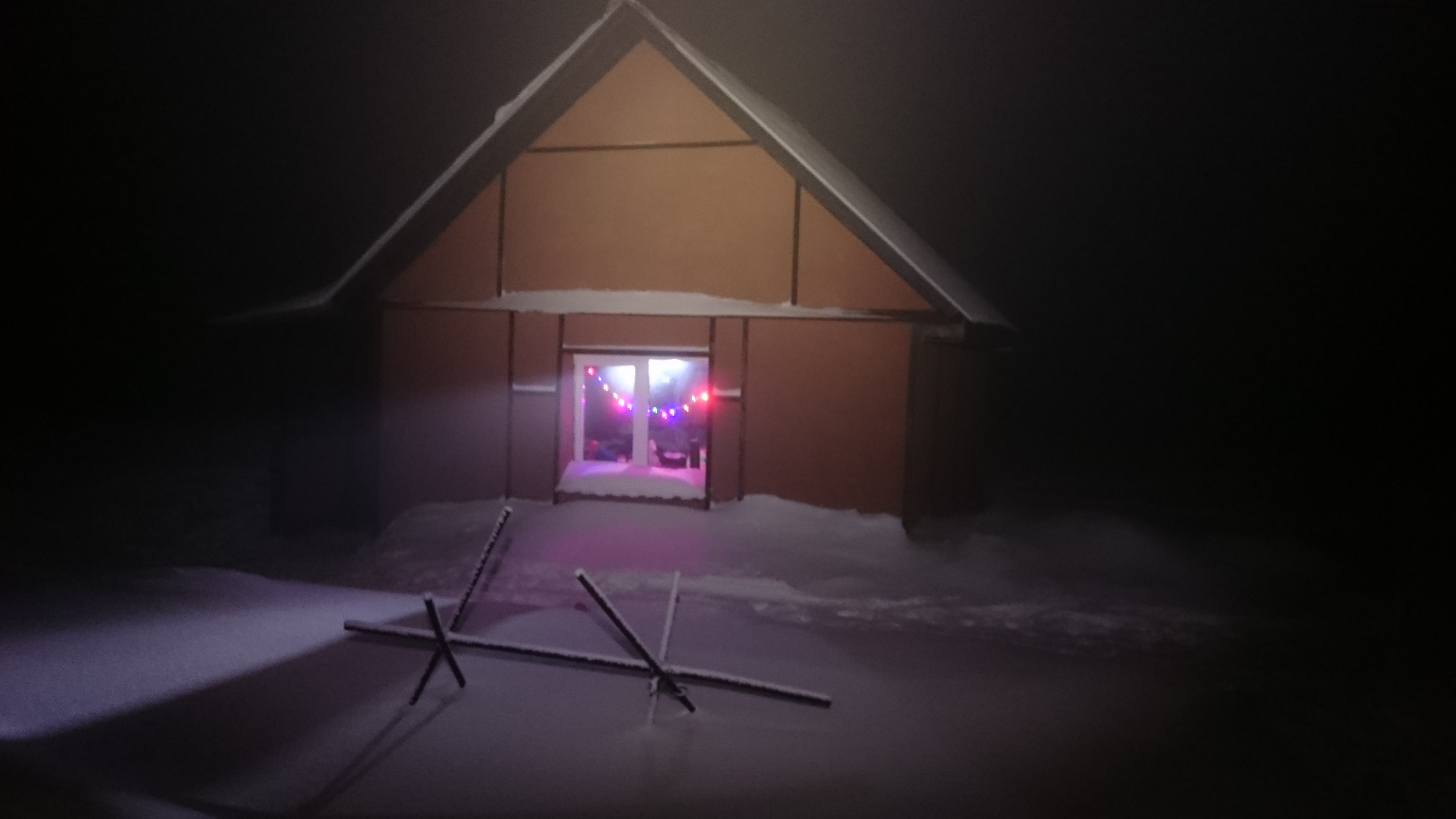 По прибытию, нашу большую толпу поделили на 2 группы соответственно двум гидам и домикам. Устроившись в своем 2ом домике и немного перекусив, украсив окна новогодней гирляндой и затопив печь, мы стали ждать приезда котлов, которые ехали отдельно на снегоходе, но все равно еще почему-то не приехали. Мы не стали унывать в самом начале нашего новогоднего приключения и сумели развлечь себя шампанским, которое так заботливо прихватили с собой в поход жильцы нашего домика (удачно я попала в группу!).