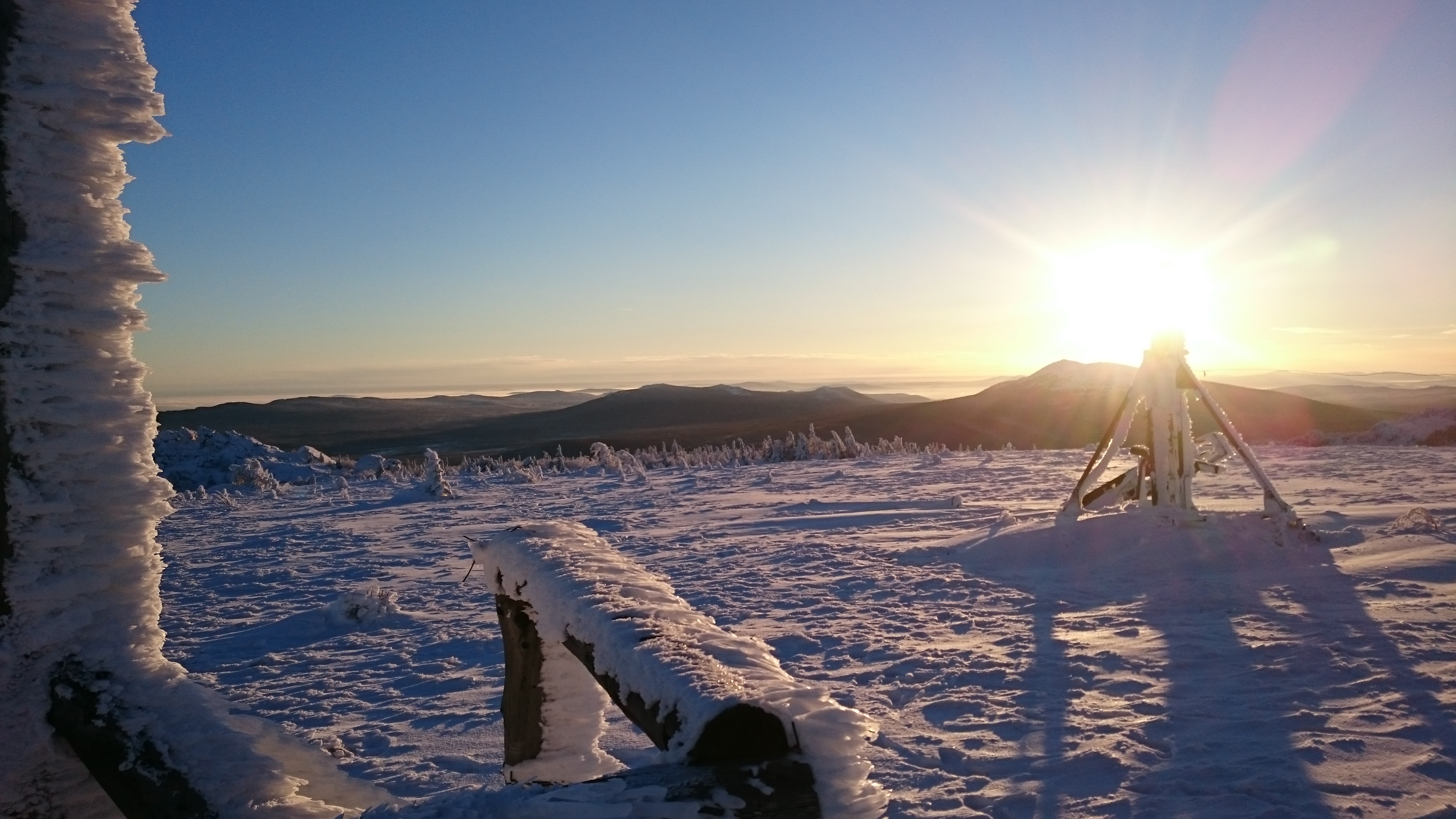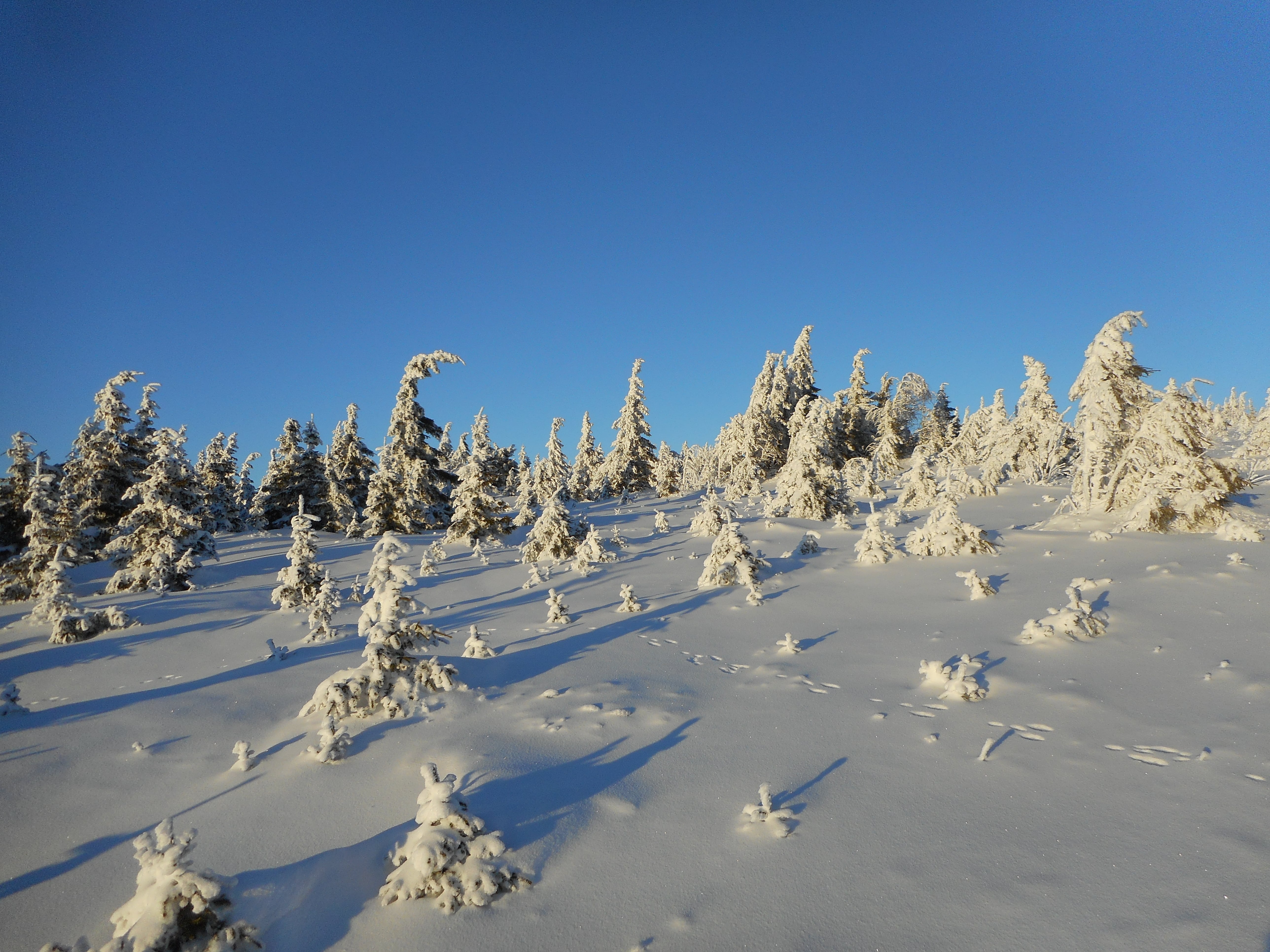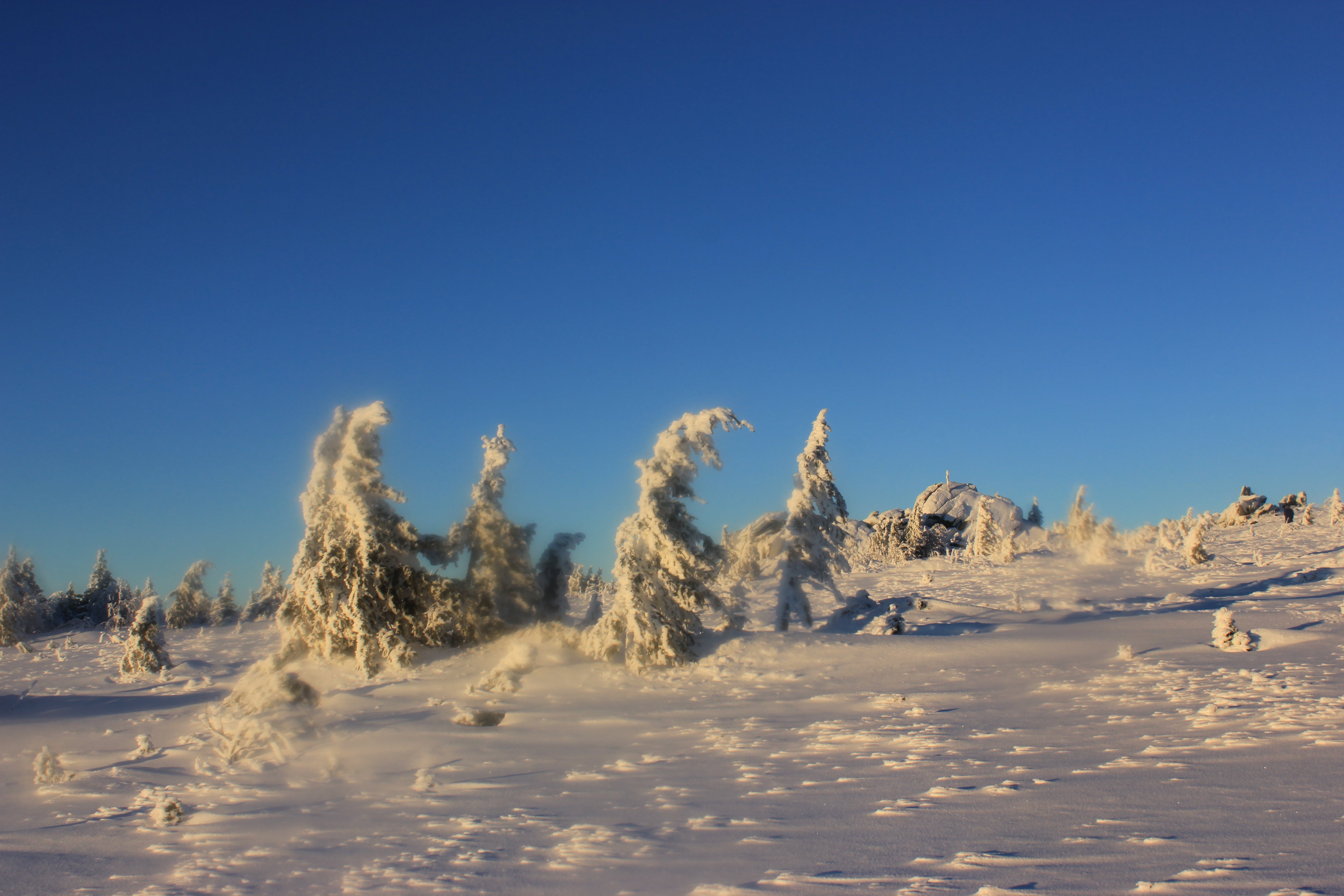 Это были совершенно новые для меня ощущения, никогда еще мое тело так не сопротивлялось моей воле. Каждый шаг давался мне с трудом. Мои мышцы еле-еле обеспечивали малюсенькие шажочки. Еще через 1,5 километра я отказалась от рюкзака с плеч (в котором лежал перекус и большой, полный горячего и сладкого чая, термос) и от большого полупрофессионального фотоаппарата с шеи в пользу доброго и могучего Кочегара. Но даже это весомое облегчение меня не сильно спасло, идти было почти невозможно. В неравной борьбе с горой и собственными телами наша небольшая команда растянулась вдоль тропы, мне кажется, на километры. Красивый заснеженный лес, на который я уже давно не обращала внимания, сначала стал покрываться обледенелой коркой, а затем и вовсе стал мельчать. Чем выше мы ползли, тем ниже и реже становились деревья. В конце концов, в добавок к нашим трудностям появился еще и ветер. Последний километр мне показался вообще бесконечным. К этому моменту я оказалась на тропе совсем одна: те, кто был впереди – уже скрылись, а те, кто был сзади – окончательно отстали. Я одиноко брела по снежной пустыне вверх целую вечность, тормошимая ветрами и кое-как передвигая ноги. А конец дороги все никак не хотел наступать, сколько бы я не шла.