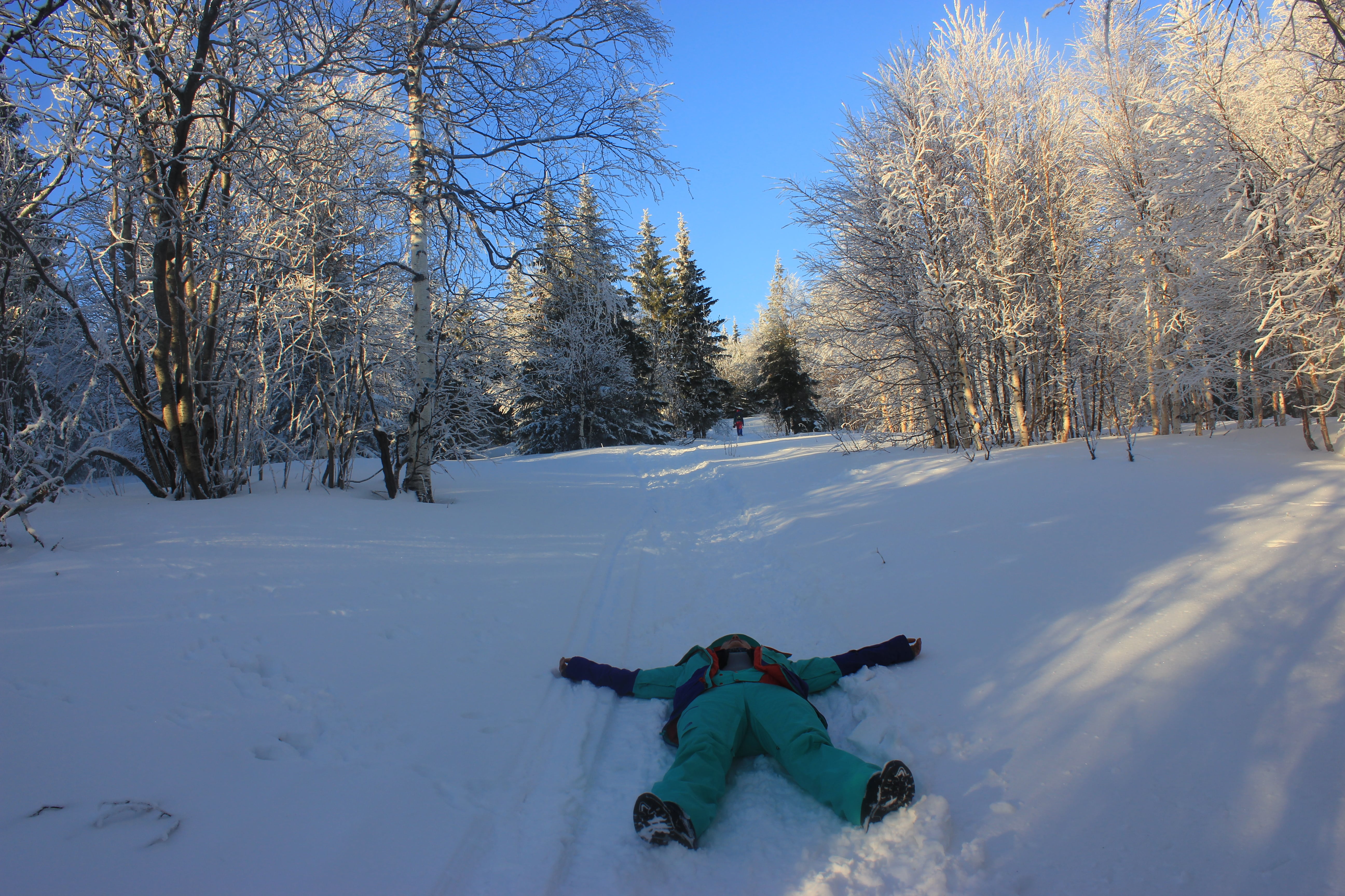 Те самые сложные 3 километра, казавшиеся бесконечной пыткой еще каких-то 20 минут назад промелькнули мимо точно метель. К тому же, на обратном пути мы решили выбрать более короткий путь. На проверку он оказался почти нехоженный, но нас уже было не остановить. Мы вприпрыжку бежали по сугробам и рыхлому снегу. Мою усталость как рукой сняло, ноги подчинялись малейшему желанию, я чувствовала только веселье и азарт. В итоге, дорога обратно оказалась в 2 раза быстрее.