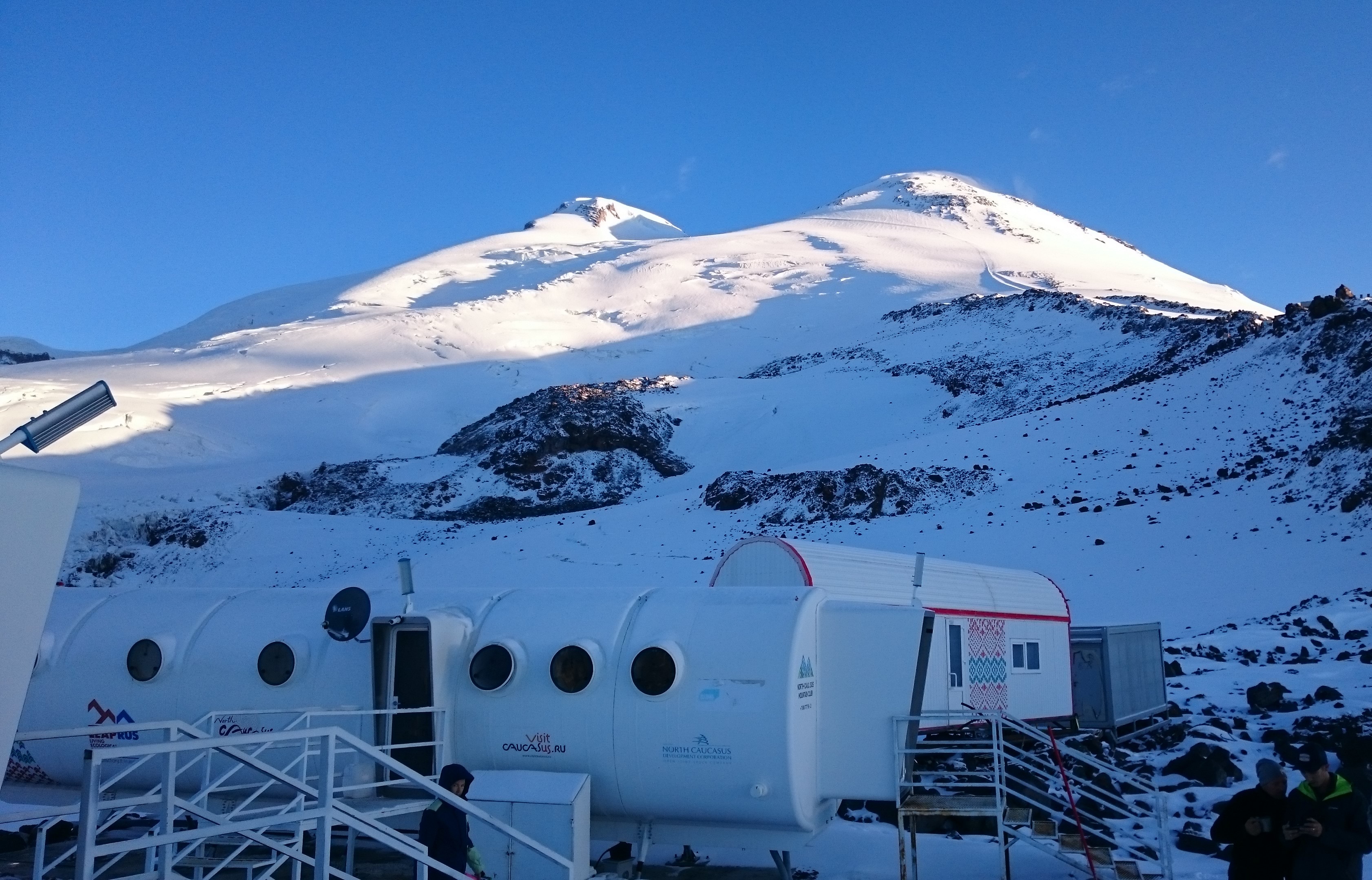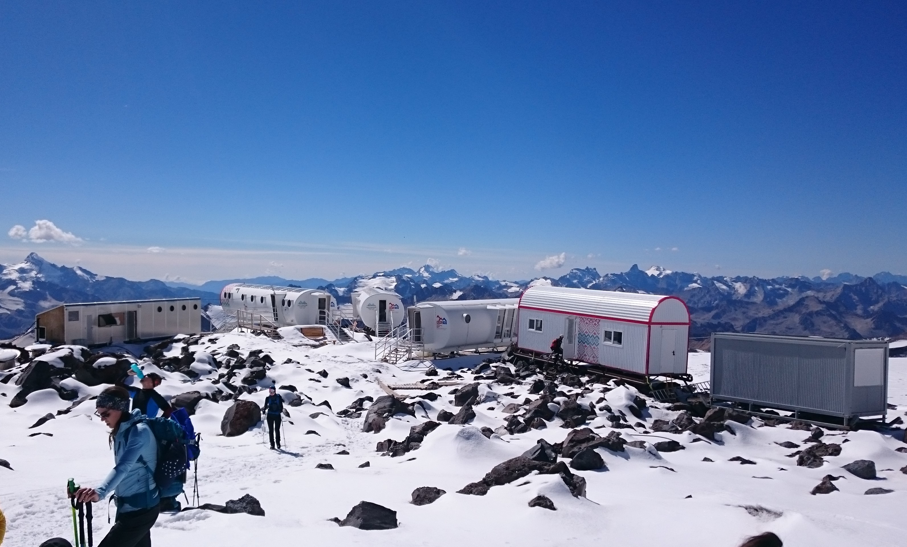 Базовые лагеря: хостел Black Point (Терскол, Кабардино-Балкария, Россия), приют "Сердце Эльбруса" (Эльбрус, Станция Гарабаши, 3850 м), приют "ЛепРус" (Эльбрус, Станция Гарабаши, 3900 м);