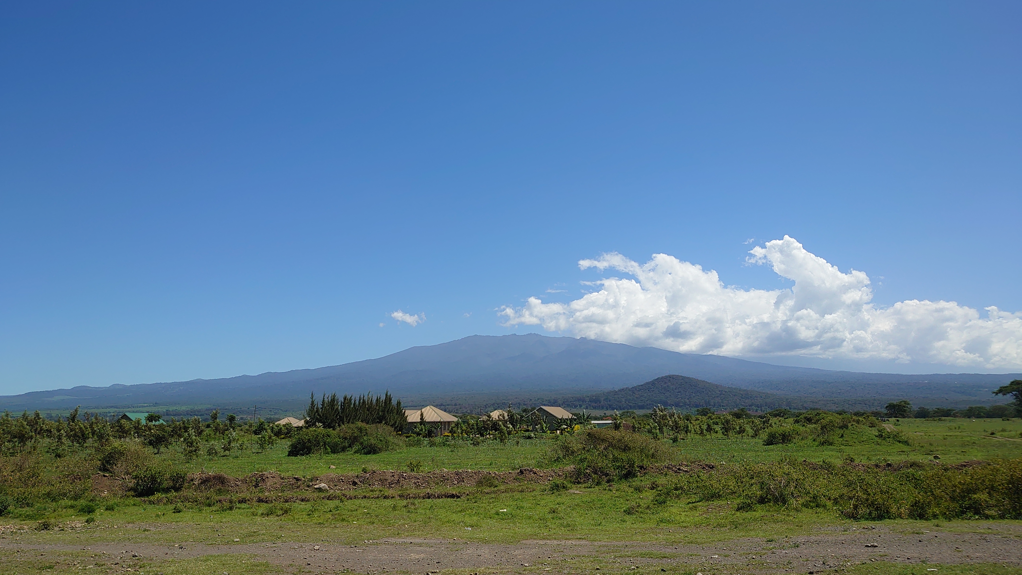 Теперь меня везут по дороге меж двух исполинов – гор Меру и Килиманджаро. Последняя – просто огромная! Она высится и ширится с каждым километром, расползаясь-разворачиваясь во все стороны словно из подпространства, почти нависая, будто каменная циклопическая стена, огораживающая всю Танзанию от остального мира.