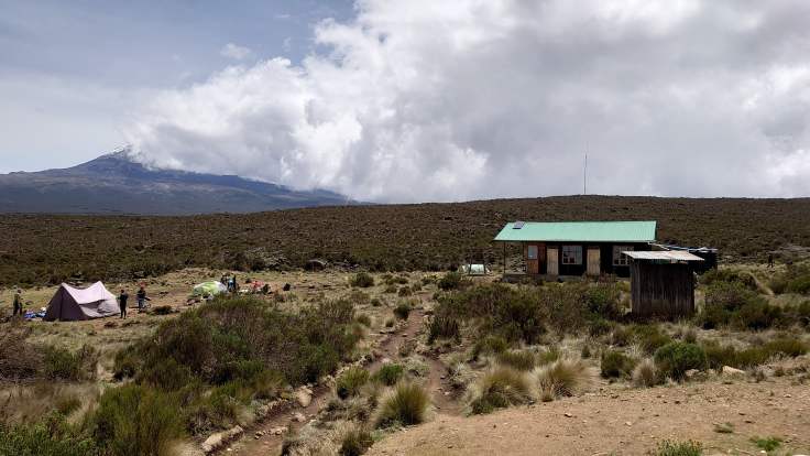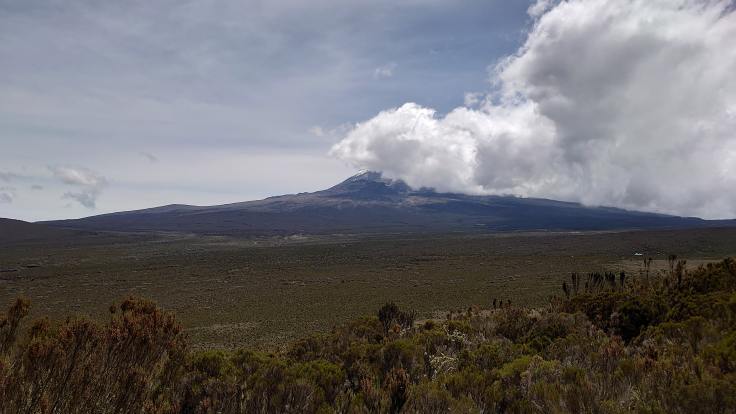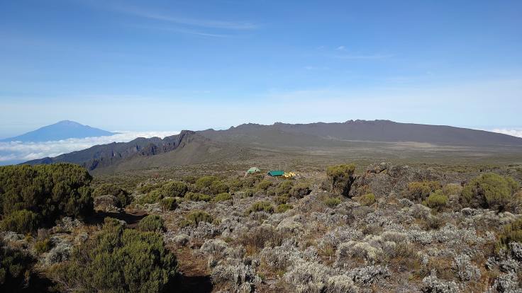 Погода хорошая и Килиманджаро чётко выделяется на фоне ясного голубого неба. Хотя ночь оказалась ровно такой же холодной, как и предыдущая, мне, вроде бы, удалось хорошо поспать (акклиматизация?). Всё это, в купе с плотным завтраком (манкой, гренками, омлетом с овощами и фруктами), обещает быть хорошим ходовым днём.