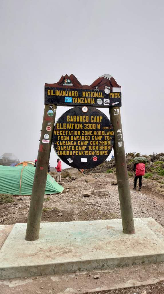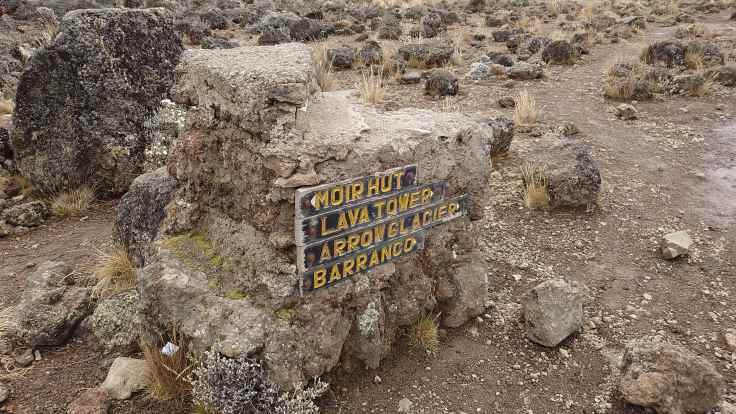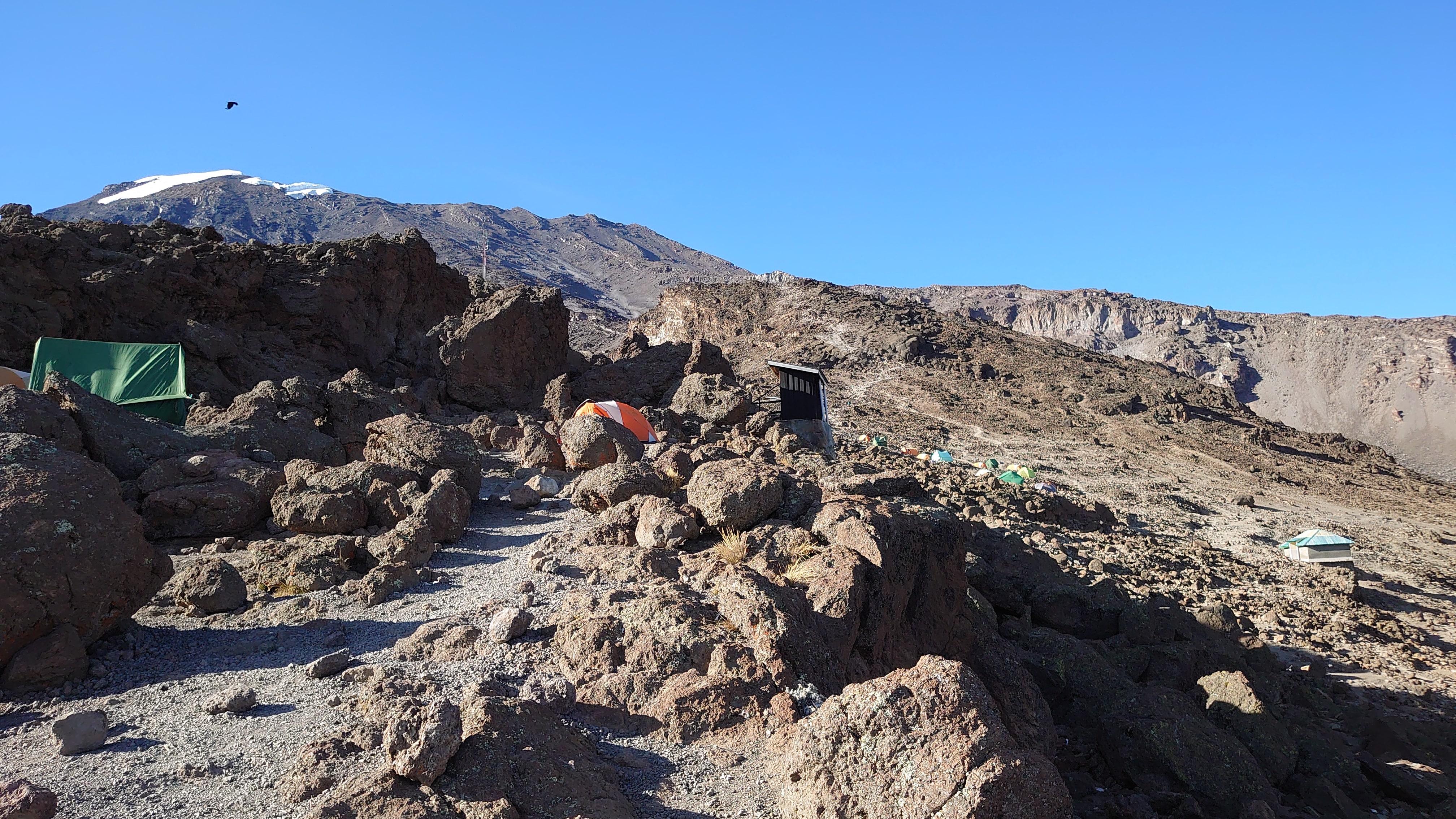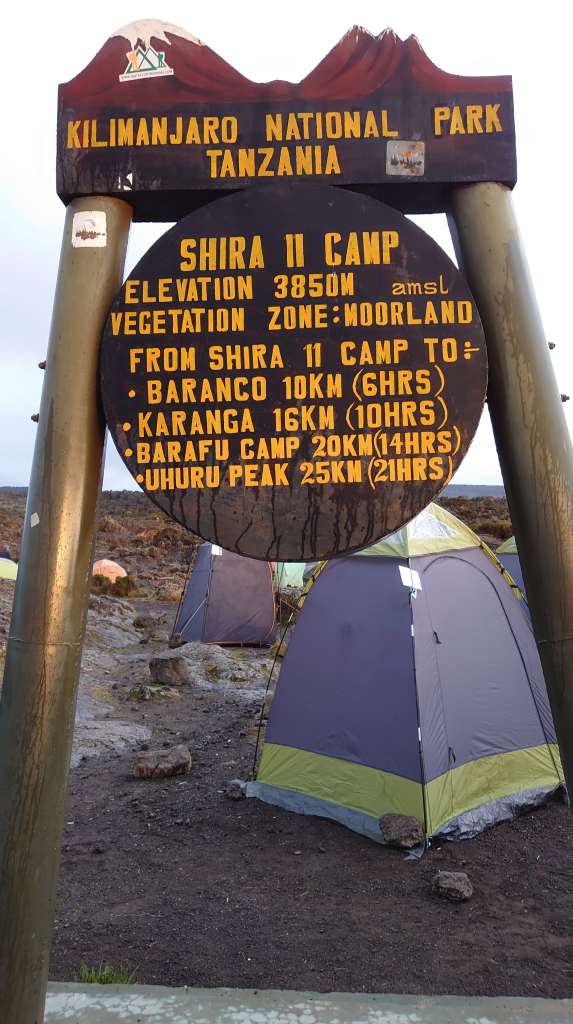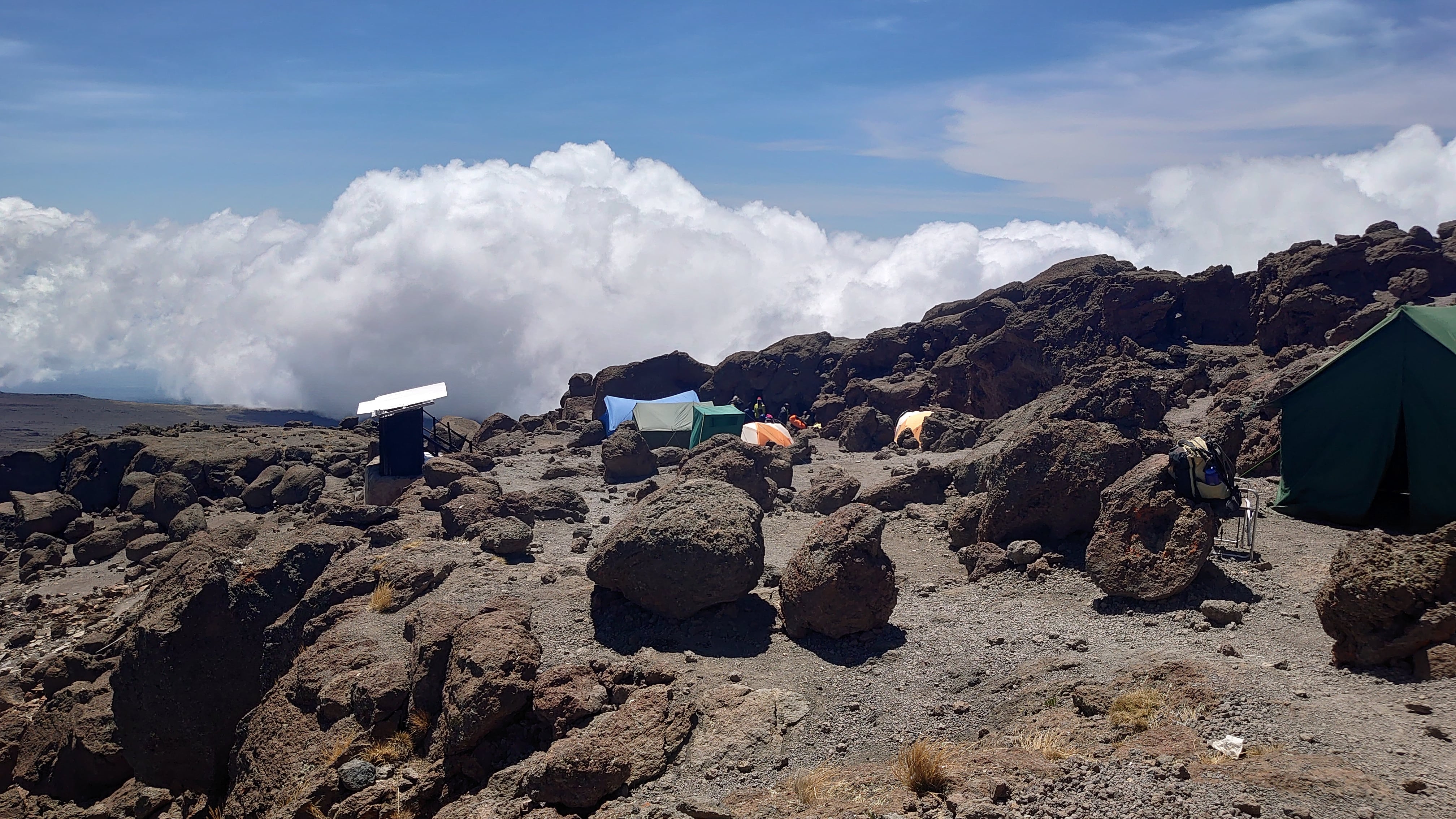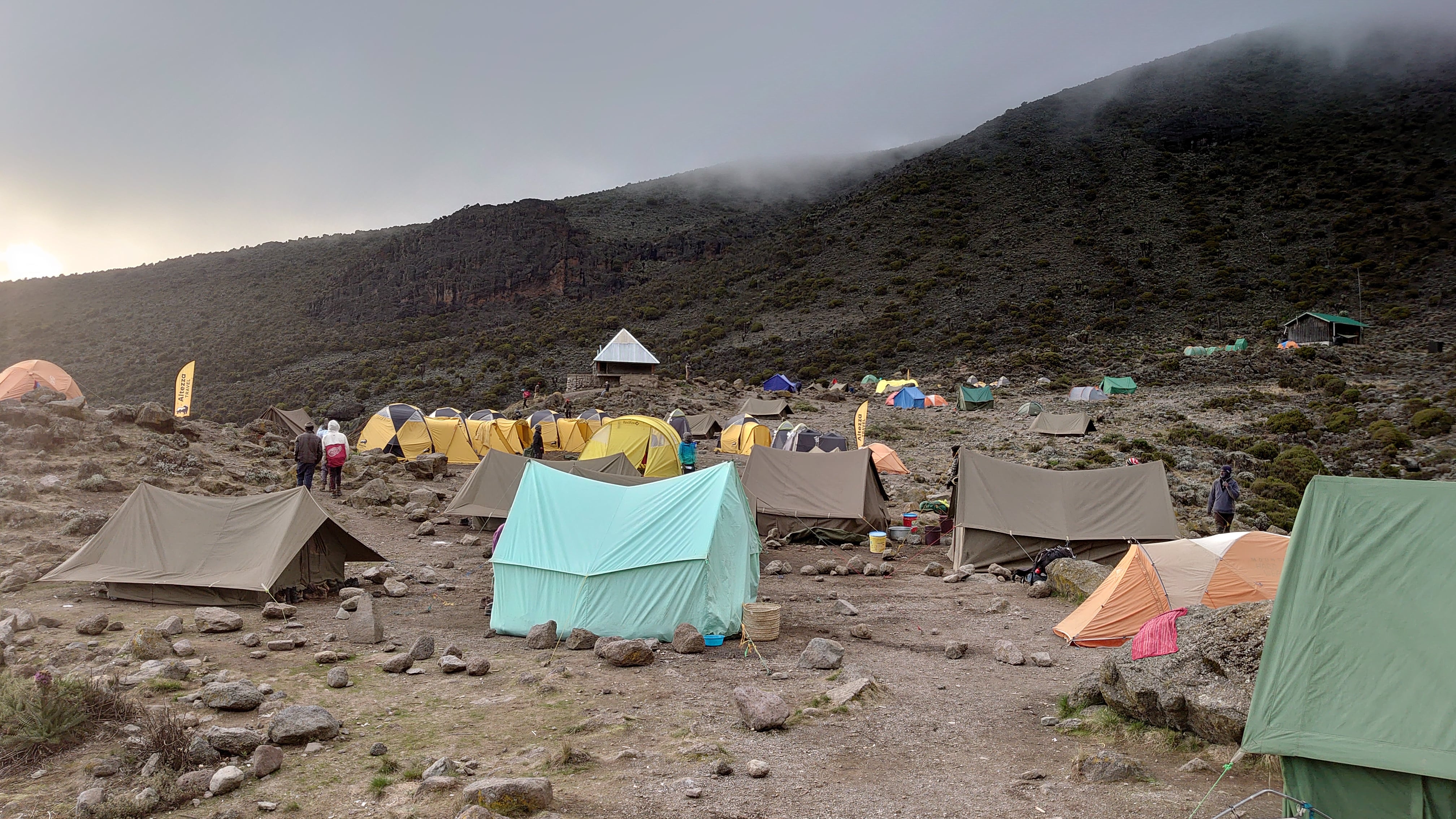 Базовые лагеря: отель (Моши, Килиманджаро, Танзания), лагерь Мti Mkubwa (Килиманджаро, 2650 м), лагерь Shira 2 (Килиманджаро, 3850 м), лагерь Baranko (Килиманджаро, 3900 м), лагерь Karanga (Килиманджаро, 3990 м), лагерь Barafu (Килиманджаро, 4673 м);