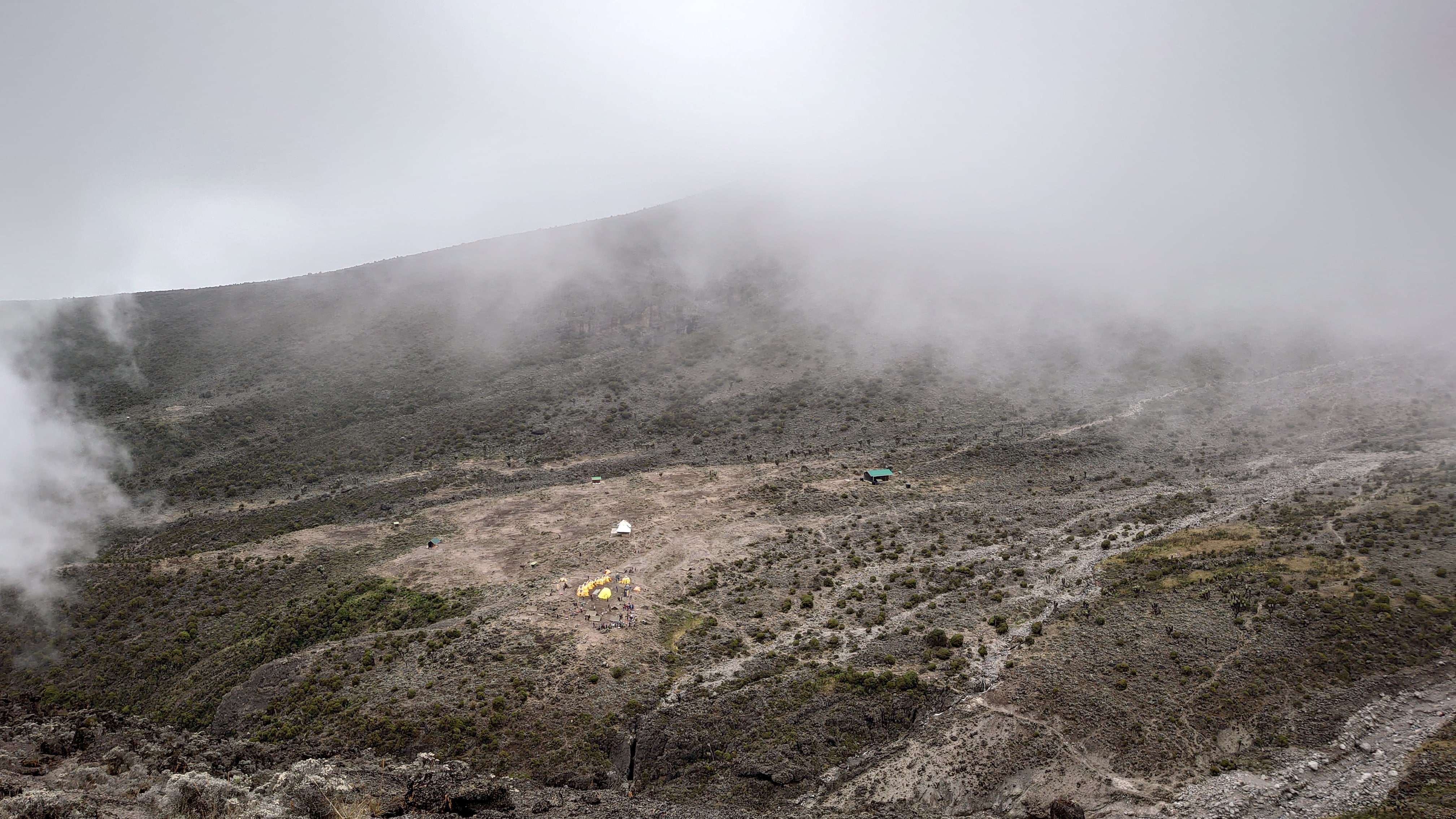 На спуске с вершины, у нас с Напарницей, то ли от эйфории, то ли от спутанности сознания, созрел амбициозный план, который мы активно продавили гидам: сегодня спуститься с горы и уехать в гостиницу. Теоретически – это возможно, если успеть спуститься к подножию до закрытия ворот парка. Для этого, чтобы сэкономить время на спуск, мы пойдем обратно по южному маршруту Мвека – он намного короче Лемошо, но и сброс высоты резче. Надо срочно собирать вещи и выдвигаться вниз. А пока готовят завтрак пойду отключусь в палатке, решено выходить через 2 часа.